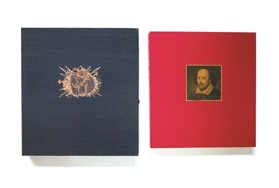 r特精装珍藏版《莎士比亚画廊》,是河北教育出版社1997出版的。我能一睹其当时极为罕见的豪华书风采,已是2000年的事了。那年我来北京出差,其间去拜访张子康的颂雅风文化艺术中心,在那里见到一部大开本书,足有《北京晚报》那么大,墨蓝色粗亚麻布函套的正面,印有一个大大的烫金徽章,图案中的剑与盾牌清晰可辨。徽章之外,却没有书名。子康见我好奇,即抱出此盒,“随便翻。”他说。